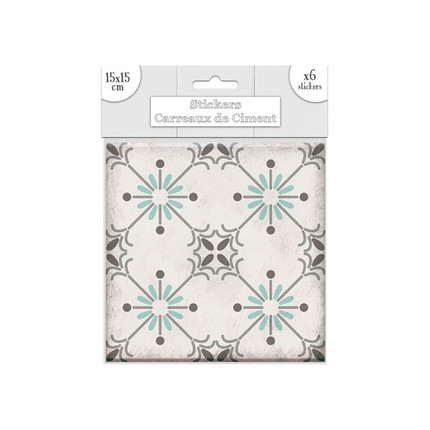6 Stickers Carreaux De Ciment Gris Et Vert 15 X 15 Cm Ciment